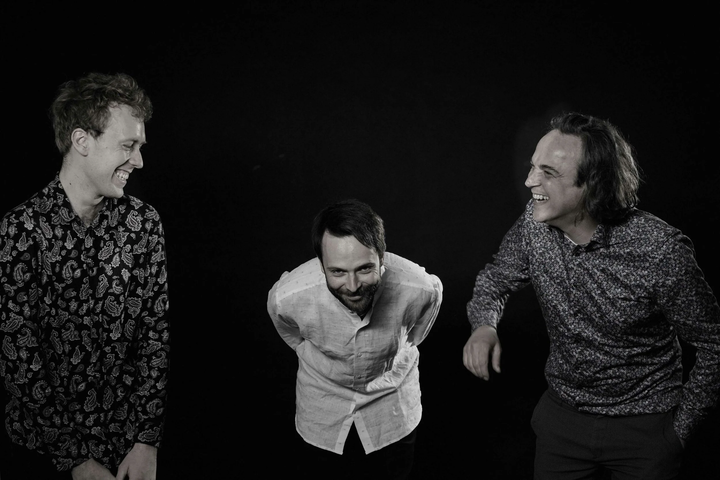 The three instrumentalists are pulling off an effervescent and sparkling performance that casts a spell over the listener; ever open-minded, they inimitably combine the most diverse musical topics whilst drawing from the broad stock of jazz history. Playing with all kinds of styles and never forgetting their respective– Balkan – roots, they follow the composed piece as well as leaving room for artful improvisations.